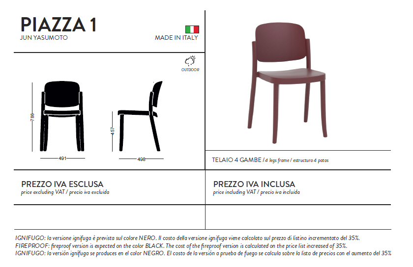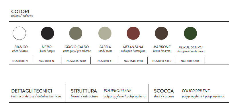 Krzesło produkowane z tworzywa, dostępna także wersja z podłokietnikiem. Krzesła można sztaplować. Krzesła posiadają atest CATAS.