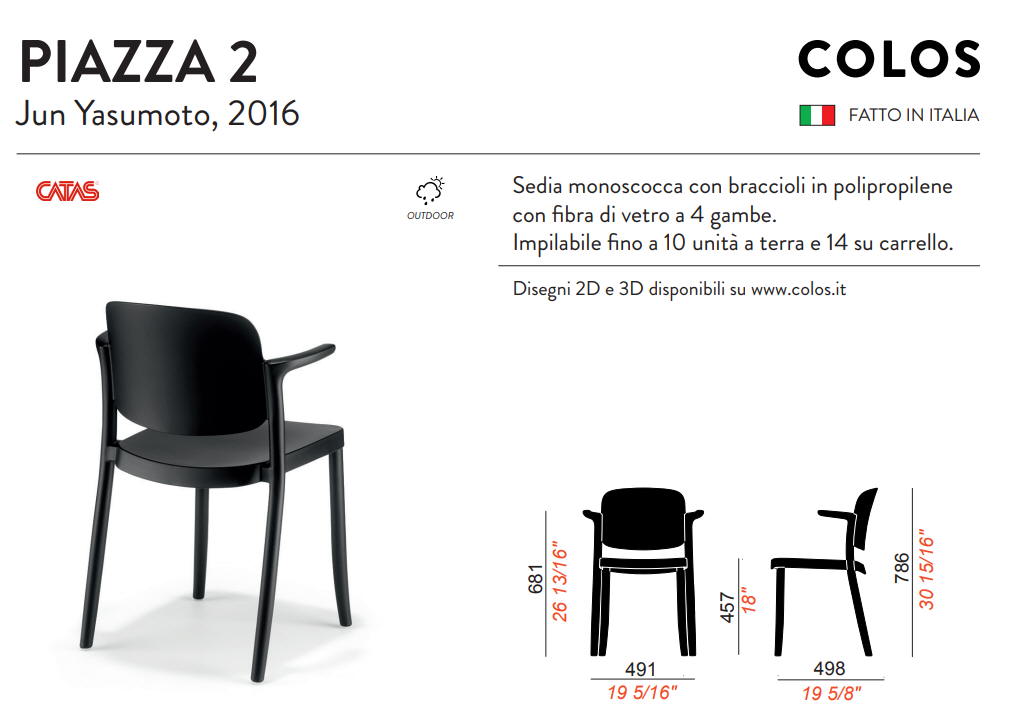 Krzesło PIAZZA 2; krzesło z polipropylenu wzmocnionego włóknem szklanym. Przeznaczone do użytku zewnętrznego jak i wewnątrz pomieszczeń. Wytrzymałe, nowoczesne krzesło o prostej i wygodnej konstrukcji. Dokładne wymiary na zdjęciu w galerii. Krzesło można sztaplować. Krzesło posiada atest CATAS.