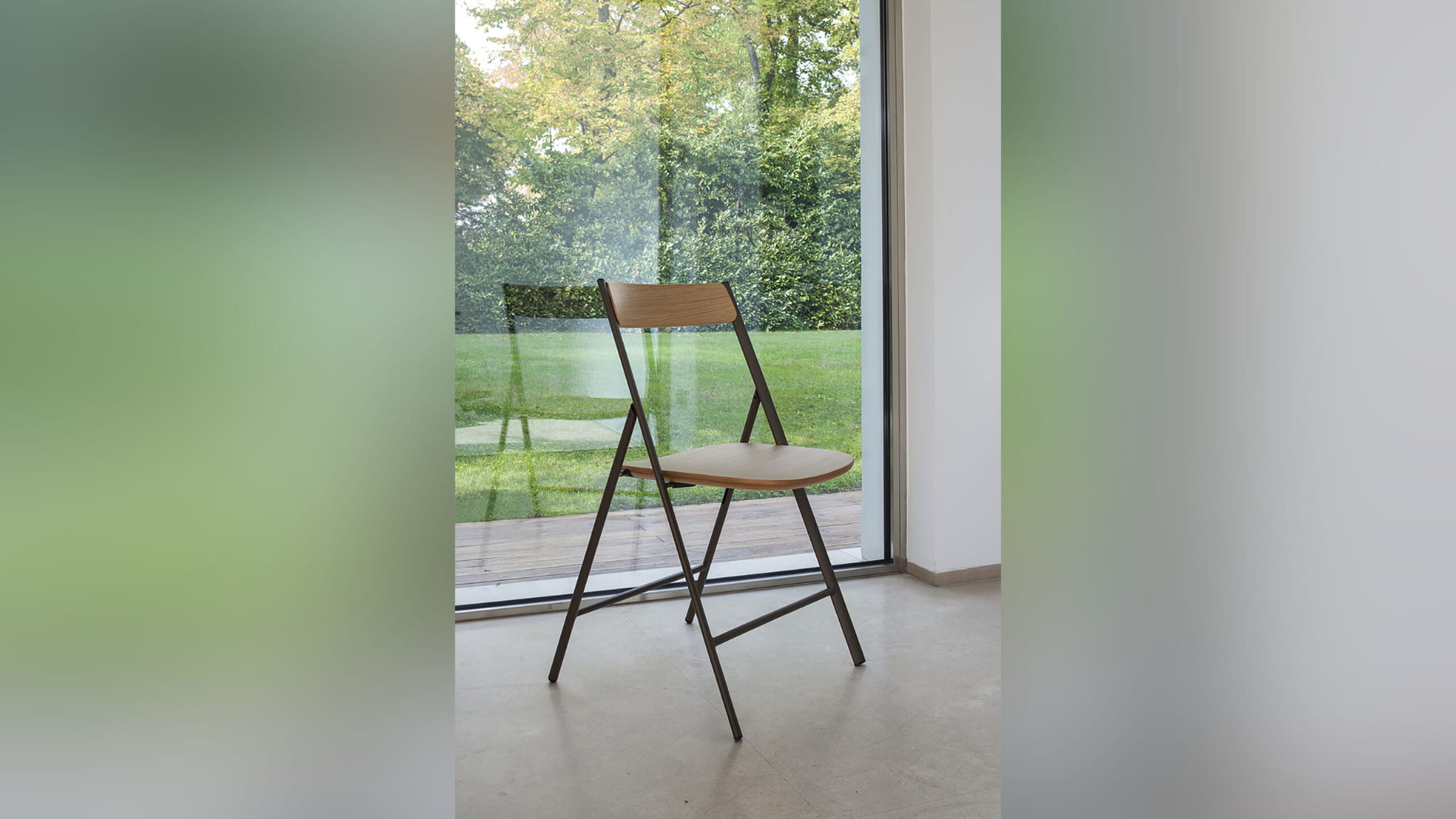 Włoskie krzesła składane JOLIE WOOD - rama krzesła metalowe w kilku kolorach; siedzisko i oparcie drewniane; dostępny jest również metalowy wieszak i wózek do przechowywania krzeseł;