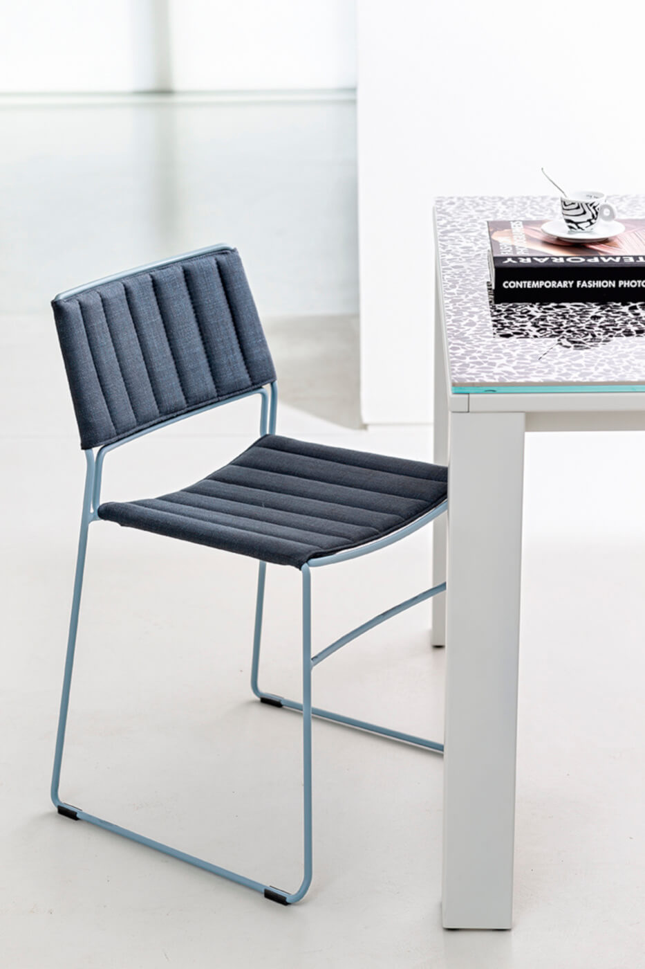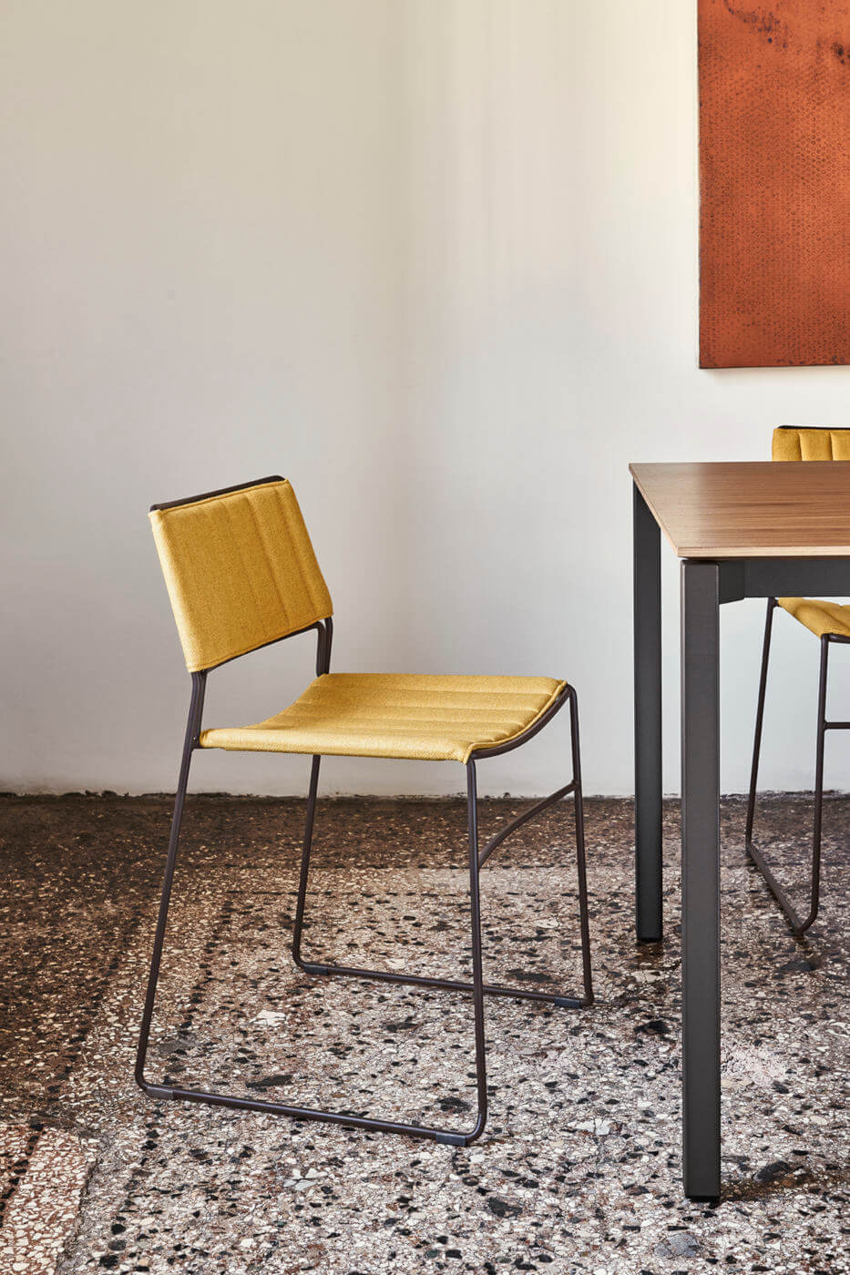 Krzesła SLIM S_M_TS siedzisko tapicerowane szeroką gamą tkanin obiciowych, ekoskór i skór naturalnych; podstawa metalowa.