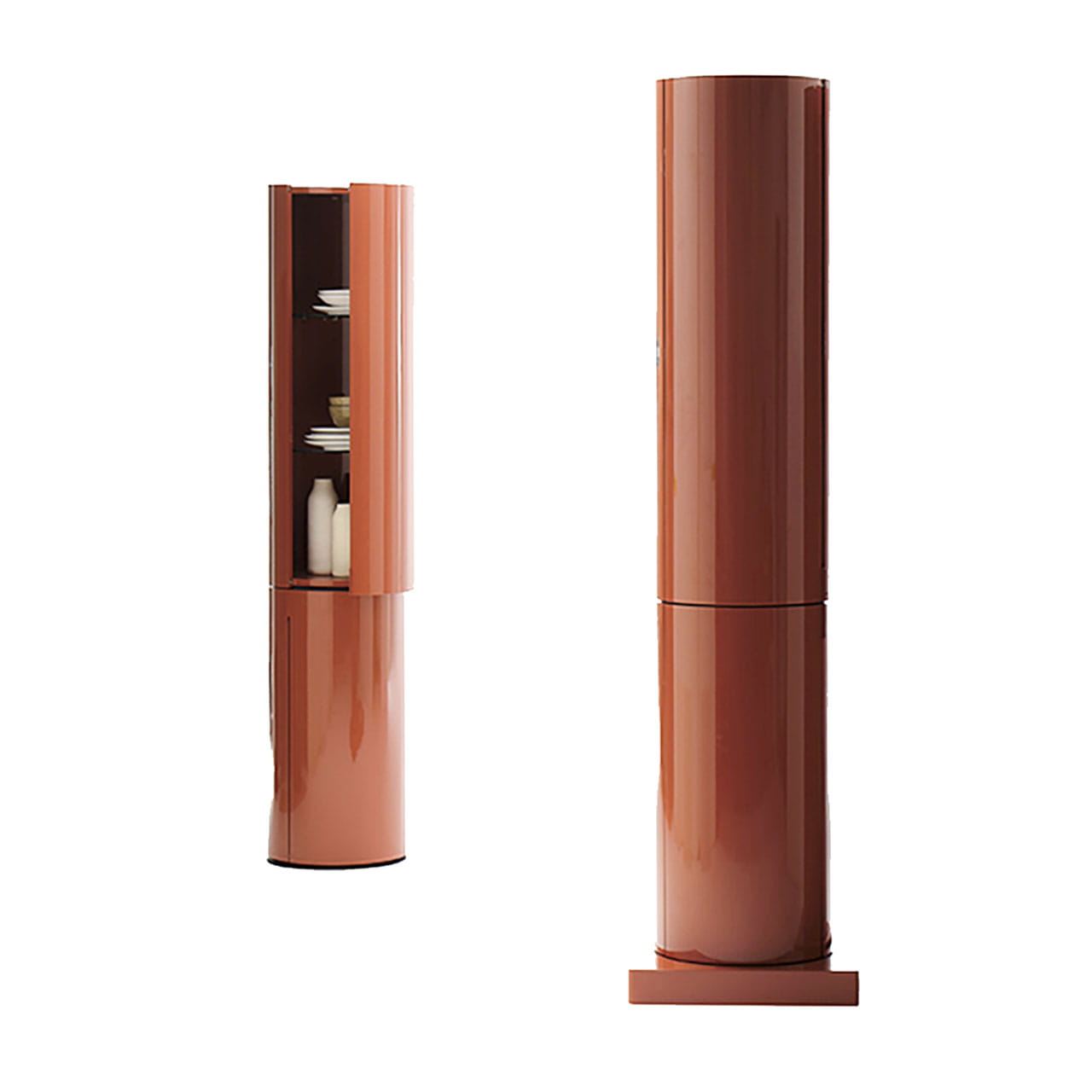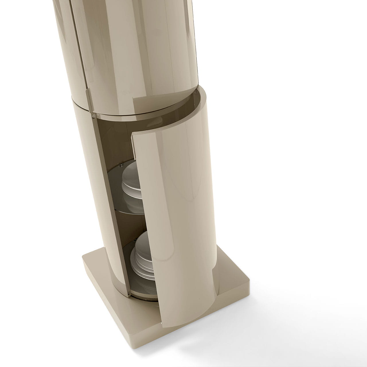 Szafka LA DORI - nowoczesne szafki dostępne w trzech wysokościach; szafki posiadają wewnętrzne szklane półki (ich ilość zależy od wysokości szafki); szafka jest lakierowana dostępna w szerokiej gamie kolorów wykończenie matowe lub z połyskiem; szafka może otwierać się na lewą lub na prawą stronę ( należy to uwzględnić przy zamówieniu); szafka musi być zamontowana na podstawie; do wyboru jest podstawa w kształcie talerza malowanego na kolor czarny (dyskretna, bez regulacji) lub kwadratowa z regulowanymi nóżkami.