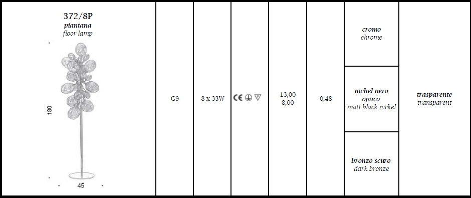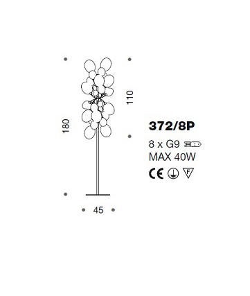 Lampa podłogowa NUVOLA 372/8P - interesująca seria lamp rama metalowa w trzech kolorach; klosze szklane transparentne; specyfikacja produktu poniżej; oryginalny produkt włoski.