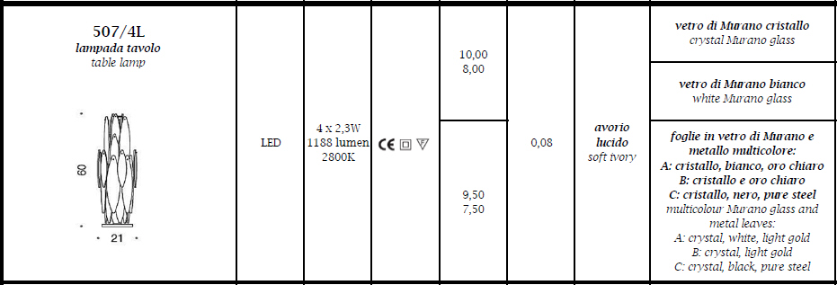 Lampa stołowa ICE RAIN 507/4L - efektowna i niepowtarzalna dostępna w kilku wariantach kolorystycznych; specyfikacja produktu poniżej; oryginalny produkt włoski.