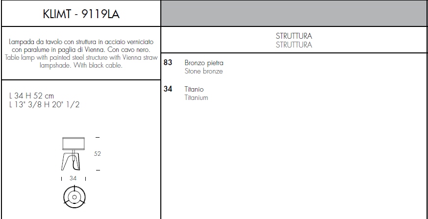Lampa stołowa KLIMT - Oryginał TONIN Casa