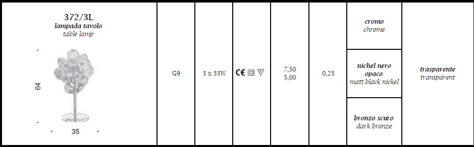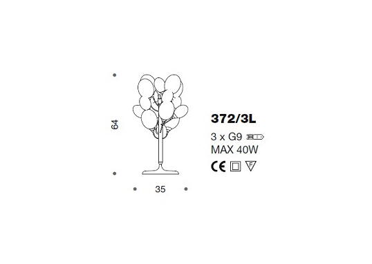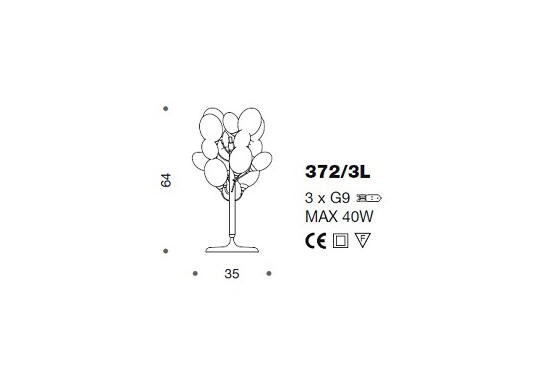 Lampa stołowa NUVOLA 372/3L - interesująca seria lamp rama metalowa w trzech kolorach; klosze szklane transparentne lub kolorowe transparentne; specyfikacja produktu poniżej; oryginalny produkt włoski.