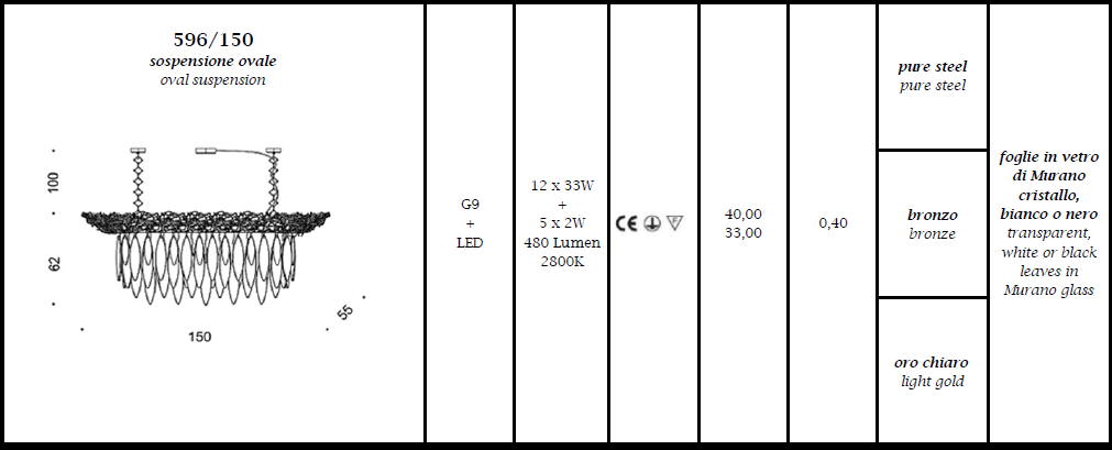 Lampa wisząca ELITE 596/150 - efektowna seria lamp, doskonała do wnętrz w stylu galmour; metalowe elementy w trzech kolorach i dekoracje ze szkła Murano w trzech kolorach; specyfikacja produktu poniżej; oryginalny produkt włoski.