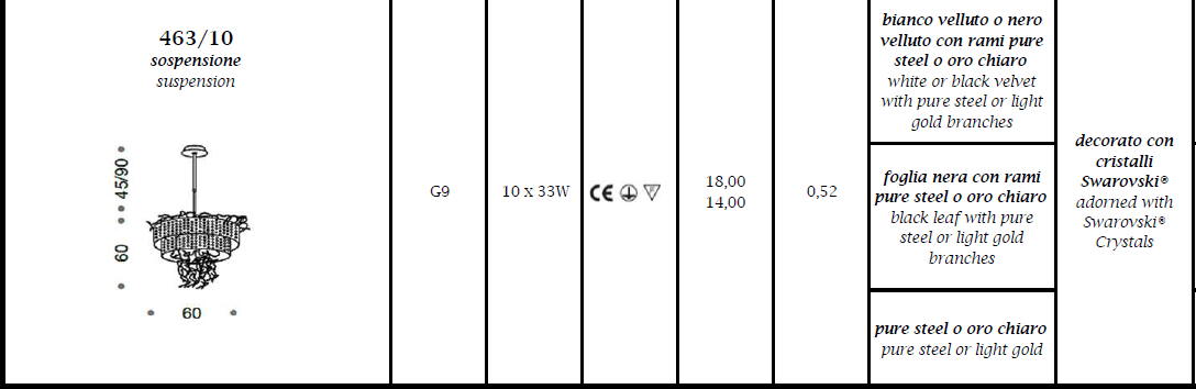 Lampa wisząca GROOVY 463/10 - wisząca, duża, dekoracyjna lampa; efektowna i niepowtarzalna dostępna w kilku wariantach kolorystycznych; specyfikacja produktu poniżej; oryginalny produkt włoski.