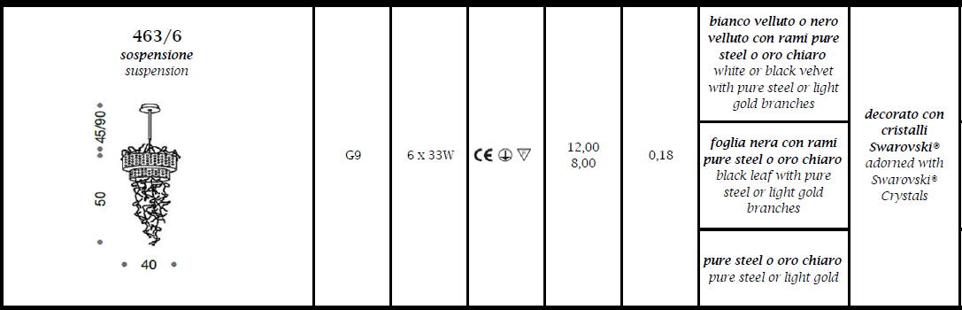 Lampa wisząca GROOVY 463/6 - wisząca, duża, dekoracyjna lampa; efektowna i niepowtarzalna dostępna w kilku wariantach kolorystycznych; specyfikacja produktu poniżej; oryginalny produkt włoski.