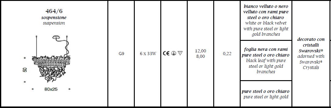 Lampa wisząca GROOVY 464/6 - wisząca, duża, dekoracyjna lampa; efektowna i niepowtarzalna dostępna w kilku wariantach kolorystycznych; specyfikacja produktu poniżej; oryginalny produkt włoski.