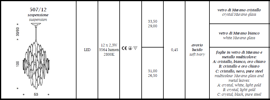 Lampa ICE RAIN 507/12 - wisząca, dekoracyjna lampa; efektowna i niepowtarzalna dostępna w kilku wariantach kolorystycznych; specyfikacja produktu poniżej; oryginalny produkt włoski.