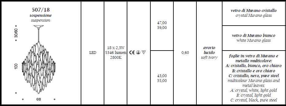 Lampa ICE RAIN 507/18 - wisząca, dekoracyjna lampa; efektowna i niepowtarzalna dostępna w kilku wariantach kolorystycznych; specyfikacja produktu poniżej; oryginalny produkt włoski.