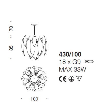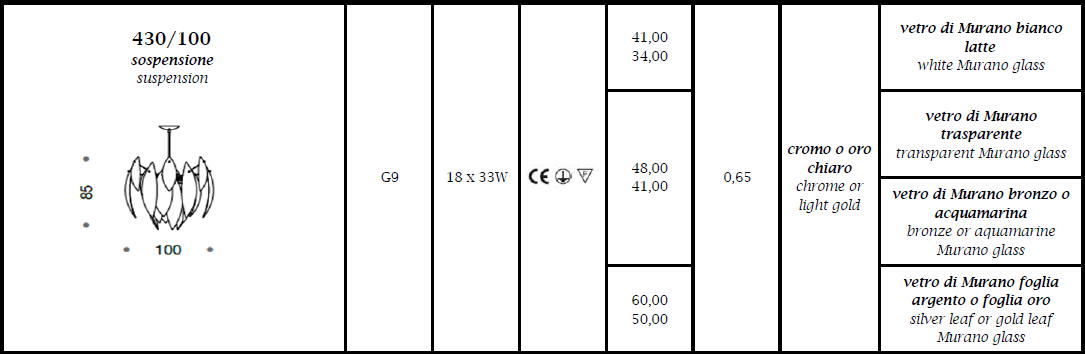 Lampa wisząca PARADISE 430/100 - wisząca, duża, dekoracyjna lampa; klosze szklane; efektowna i niepowtarzalna dostępna w kilku wariantach kolorystycznych; specyfikacja produktu poniżej; oryginalny produkt włoski.