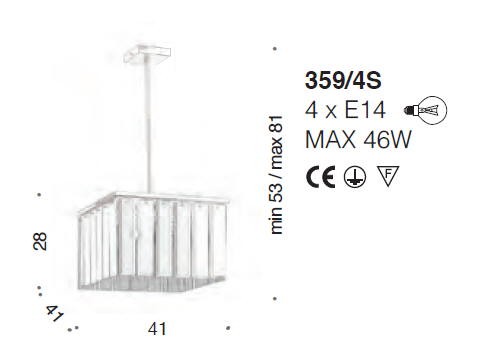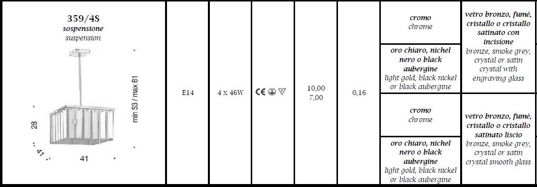 Lampa wisząca ROMA 359/4S - dekoracyjna lampa; efektowna i niepowtarzalna dostępna w kilku wariantach kolorystycznych; metalowa rama połączona ze szkłem dyfuzorowym z grawerunkiem lub bez; specyfikacja produktu poniżej; oryginalny produkt włoski.
