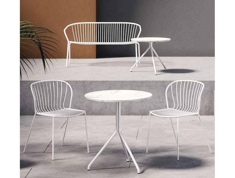 Stoły LOL - podstawa wykonana z lakierowanego metalu, dostępne w kilku rozmiarach; blat marmurowy lub ceramiczny. Dostępne również stoliki kawowe.