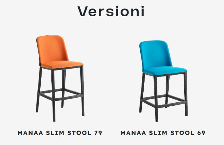 Hokery MANAA SLIM - dwa modele hokera. Hokery tapicerowane w szerokiej gamie tkanin. Podstawa z tworzywa sztucznego. Hokery są znakomitym uzupełnieniem krzeseł z tej samej linii.