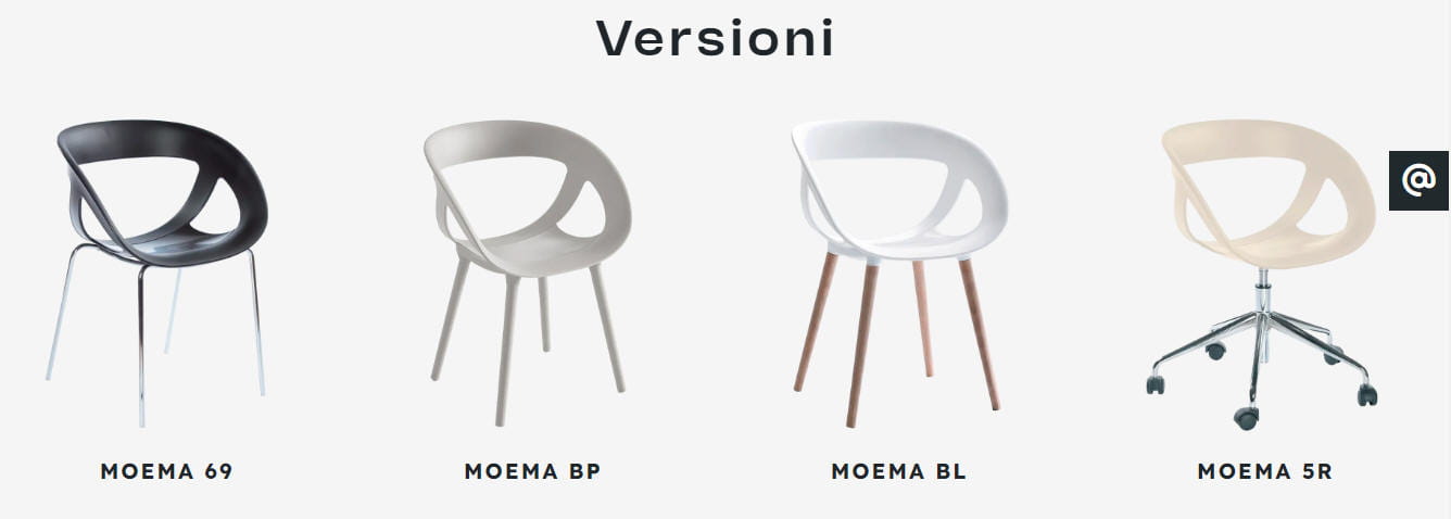 Krzesło MOEMA - szeroka gama krzeseł z serii Moema sprawia, że znajdą one szerokie zastosowania zarówno w użytku prywatnym jak i komercyjnym. To idealne krzesła do kawiarni, restauracji czy baru ale również do sali konferencyjnej, biura czy gabinetu. Siedzisko wykonane z techno-polymeru (możliwość wyposażenia siedziska w poduszkę) lub tapicerowane w całości; podstawa drewniana, metalowa klasyczna, z tworzywa ale również obrotowa na kołach, na talerzu i na krzyżaku bez kółek. Model MOEMA 69 posiada atest CATAS. Wybrane modele można użytkować również na zewnątrz.
