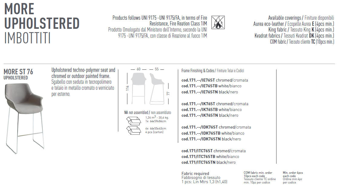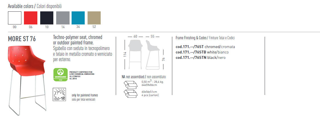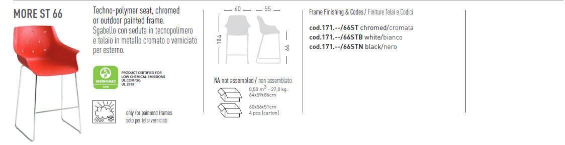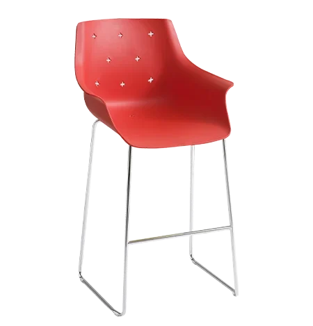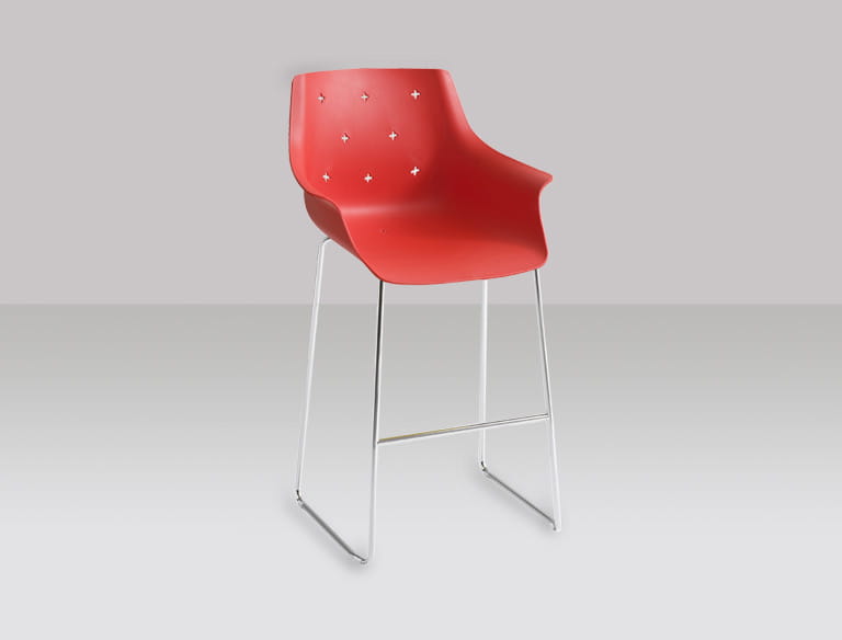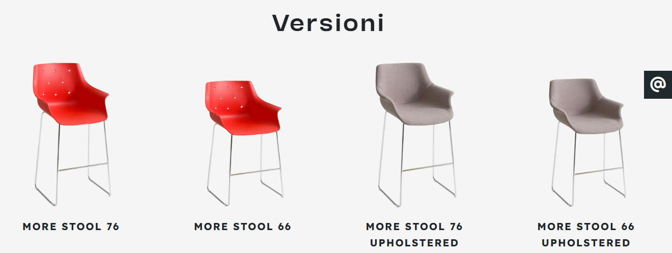 Hoker MORE - hokery dostępne w dwóch wysokościach; podstawa metalowe płozy chromowane lub lakierowane; siedzisko zależnie od wariantu z technopolimeru lub tapicerowane. Doskonałe uzupełnienie do krzeseł linii More.