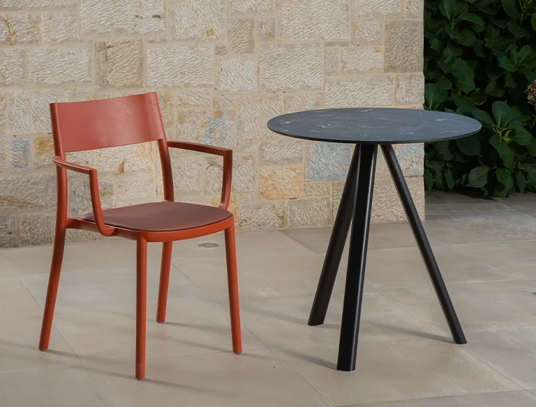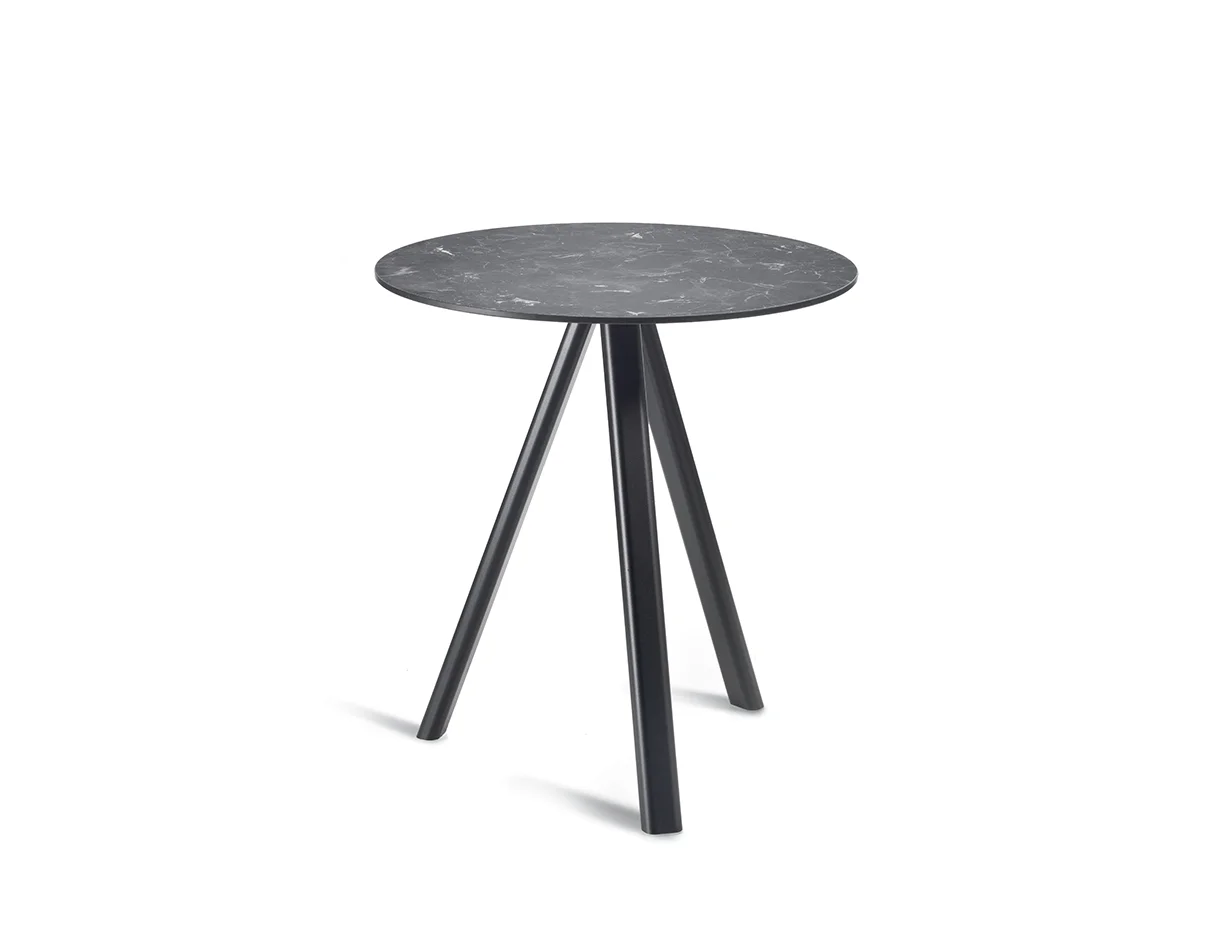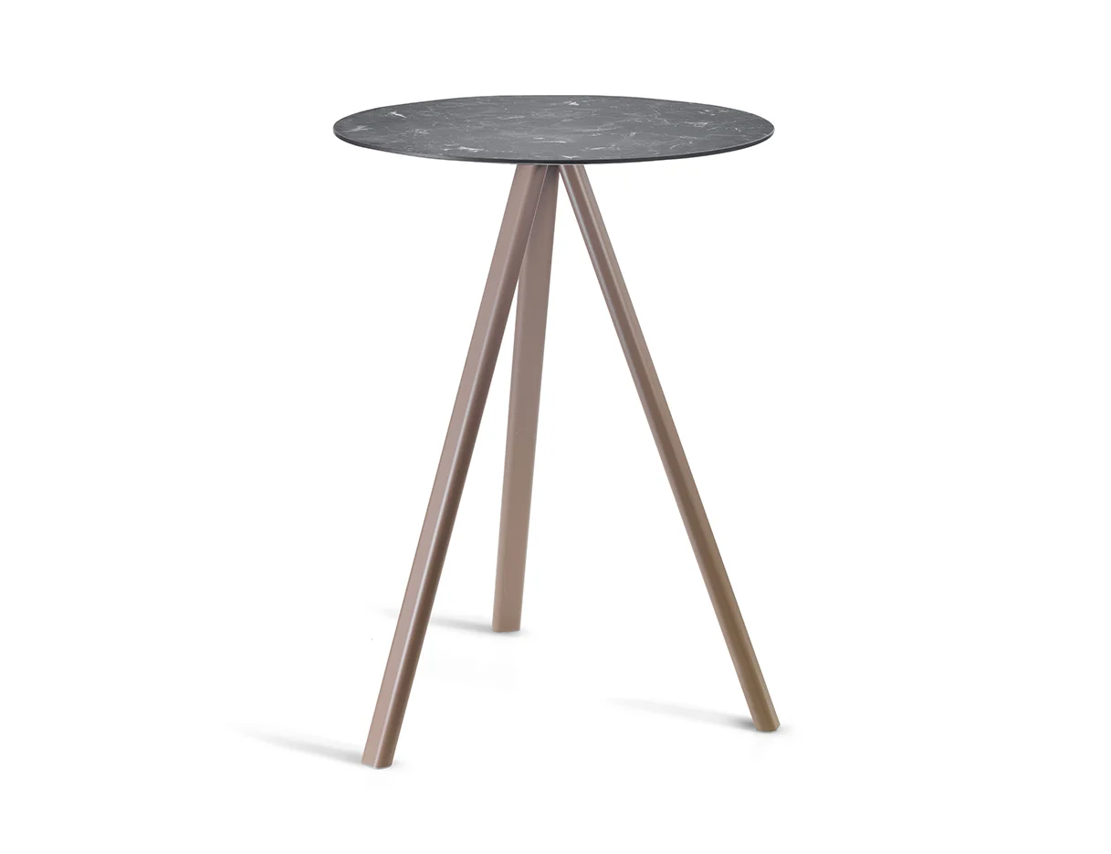 Stoły NORMAN 3-POD - nowoczesne stoły na trójnożnej podstawie z lakierowanego aluminium w kilku kolorach; blaty laminowane, compactop lub metalowe. Blaty okrągłe lub kwadratowe w kilku rozmiarach. Stoły z blatem compactop lub metalowym do użytku zewnętrznego. Stoły w różnych wysokościach, stolik kawowe w dwóch wysokościach, stoły jadalniane jak i stoły barowe w dwóch wysokościach.