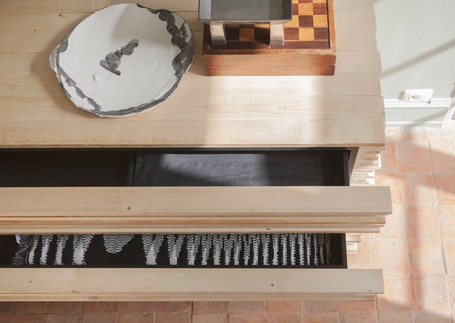 Komoda włoska ORDINARYDAY - komoda o interesującym designie, idealna do wnętrz w stylu skandynawskim. Za dopłatą tylni panel dekoracyjny umożliwiający ustawienie komody centralnie.