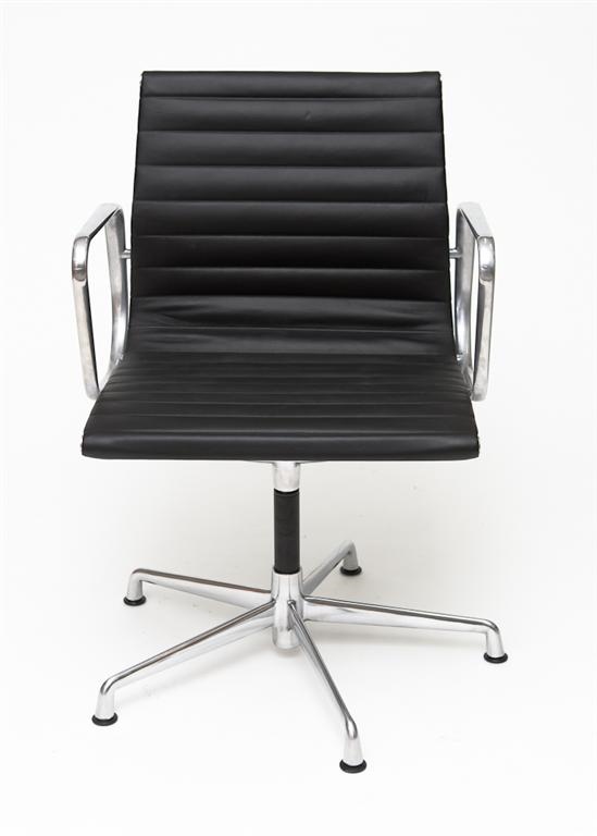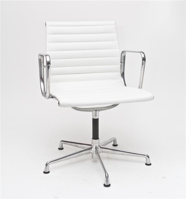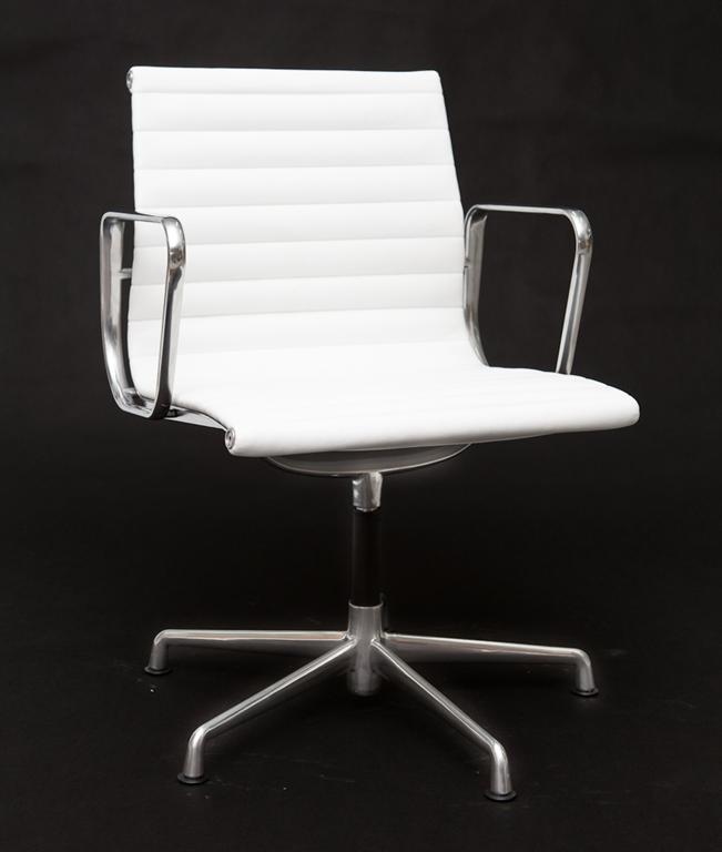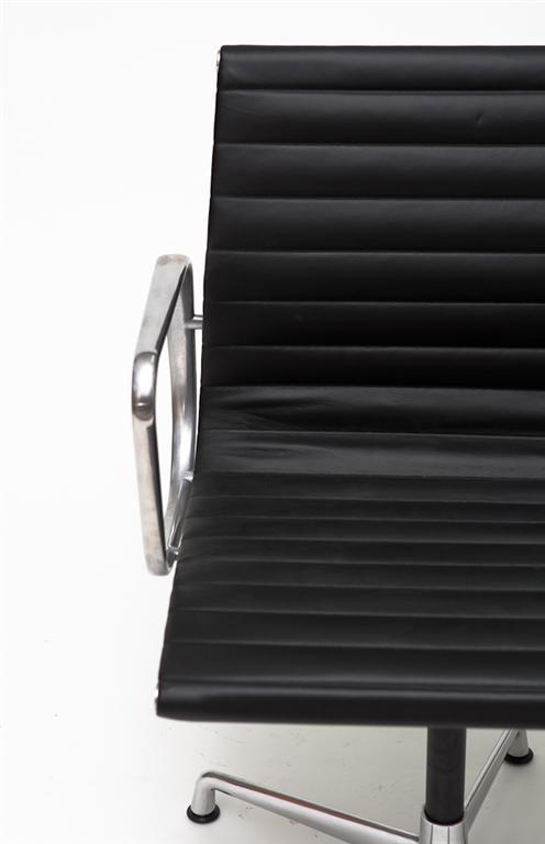 Fotel konferencyjny inspirowany projektem EA-108 siedzisko ze skóry naturalnej podstawa z polerowanego aluminium.
