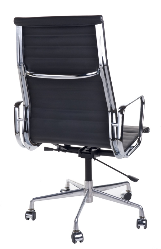 Fotel inspirowany projektem EA-119 podstawa chromowana siedzisko skóra naturalna.