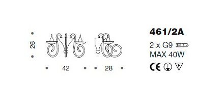 Kinkiet 461/2A DECO - elegancka lampa doskonała zarówno do nowoczesnych jak i klasycznych wnętrz; konstrukcja metalowa dostępna w trzech kolorach, klosze ze szkła; specyfikacja produktu poniżej; oryginalny produkt włoski.