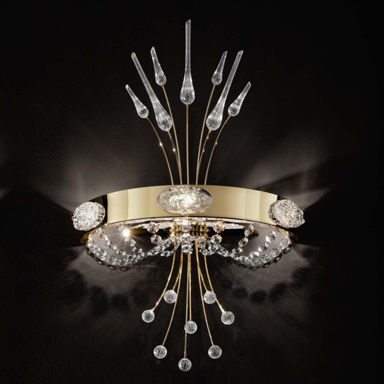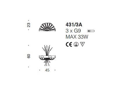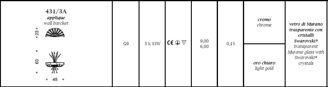 Kinkiet ELEGANCE 431/3A - dekoracyjna seria lamp, doskonała do wnętrz w stylu galmour; metalowa rama w dwóch kolorach i dekoracje ze szkła i kryształków Swarovskiego; specyfikacja produktu poniżej; oryginalny produkt włoski.