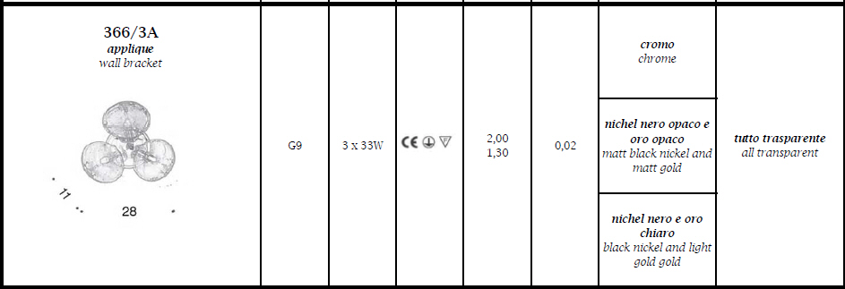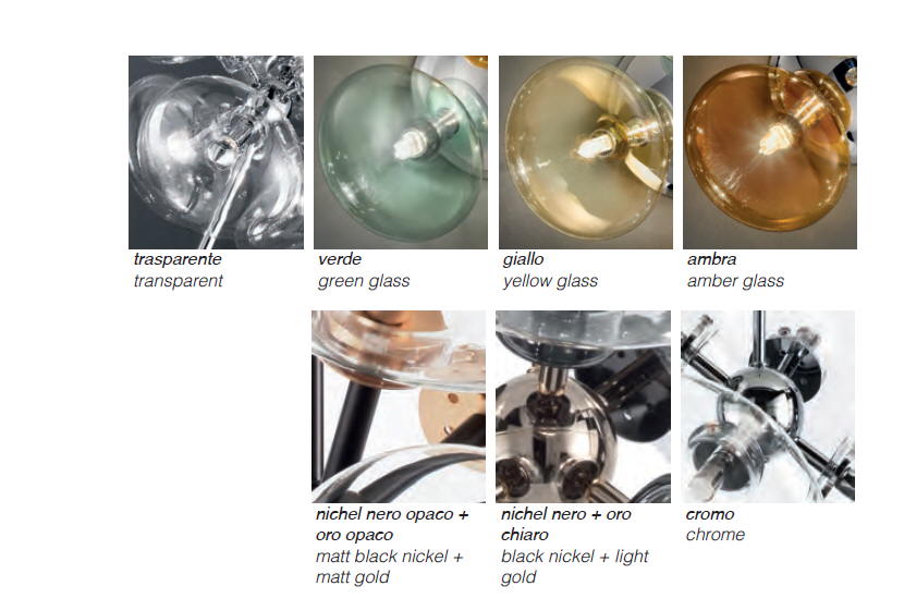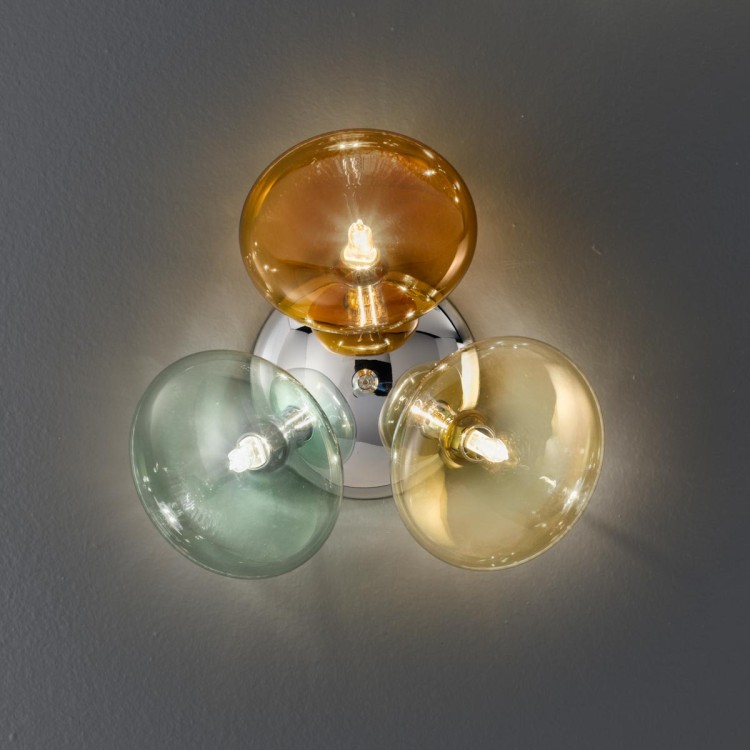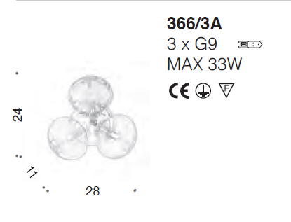 Plafon MOIRA 366/3A - minimalistyczna lampa; połączenie metalu ze szklanymi kloszami; efektowna i niepowtarzalna dostępna w kilku wariantach kolorystycznych; specyfikacja produktu poniżej; oryginalny produkt włoski.