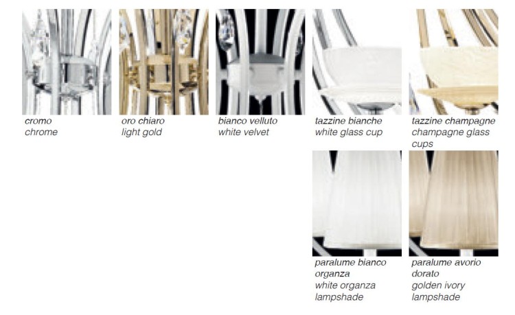 - cena od 3 066 zł brutto (dotyczy wariantu: rama velvet white; klosze white or champagne Murano glass cups adorned with Swarovski® crystals)
