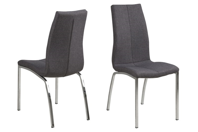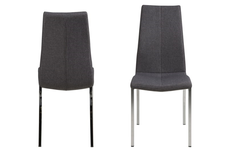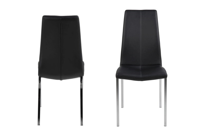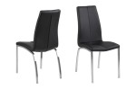 Krzesło ASAMA; proste krzesło o tapicerowanym siedzisku, podstawa metalowa, chromowana, siedzisko z tapicerowane czarną eco-skórą lub szarą tkaniną .