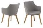 Krzesło BELLA; eleganckie krzesło z podłokietnikami o tapicerowanym siedzisku, podstawa drewniana z drewna dębowego; siedzisko z tapicerowane tkaniną w kolorze light grey.