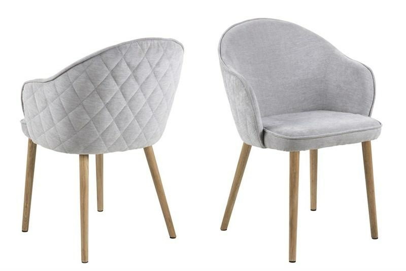 Krzesło MITZIE WOOD; siedzisko tapicerowane tkaniną w kolorze szarym z ozdobnym pikowaniem na tyle siedziska; podstawa wykonana z drewna kauczukowego.