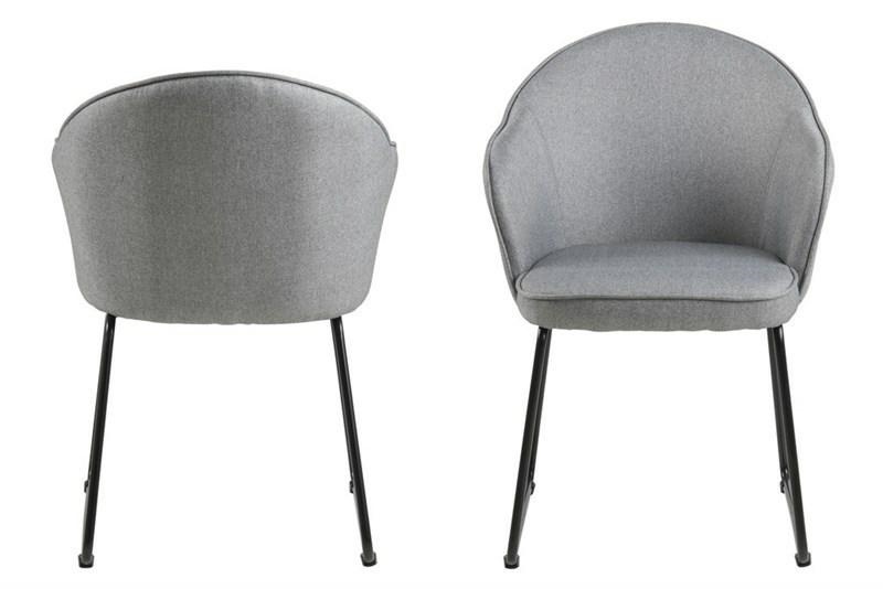 Krzesło MITZIE; siedzisko tapicerowane tkaniną w kolorze szarym; podstawa metalowa lakierowana proszkowo w kolorze czarnym.