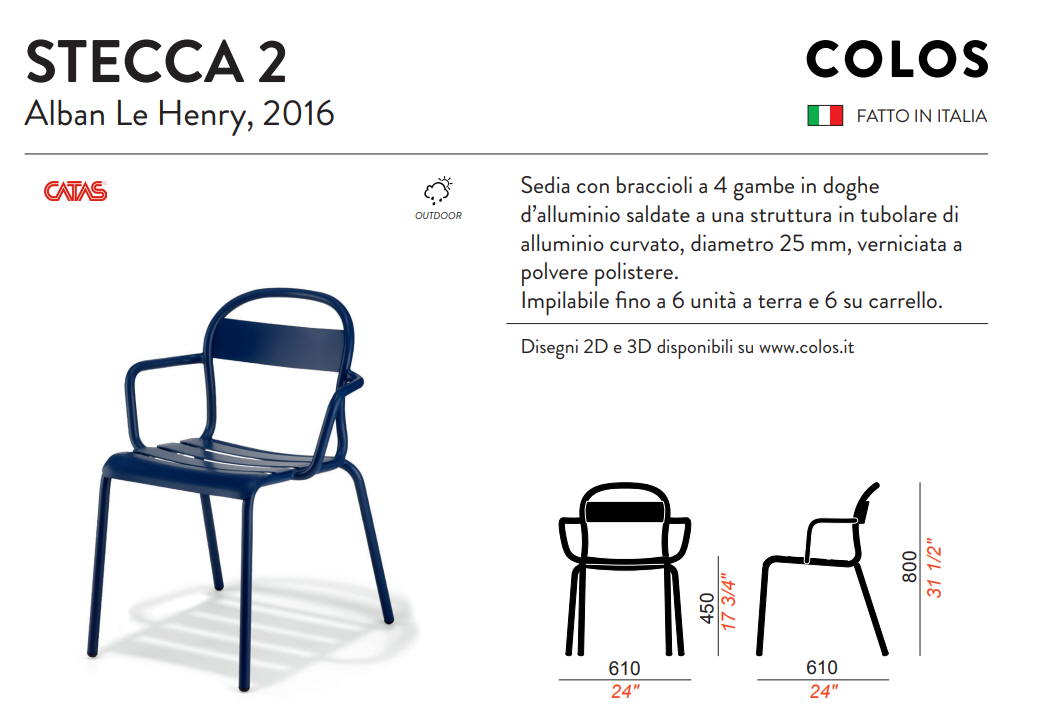 Krzesło STECCA 2; krzesło aluminiowe, lakierowane. Przeznaczone do użytku zewnętrznego jak i wewnątrz pomieszczeń. Wytrzymałe, nowoczesne krzesło o prostej i wygodnej konstrukcji. Dokładne wymiary na zdjęciu w galerii. Krzesło można sztaplować. Krzesło posiada atest CATAS.