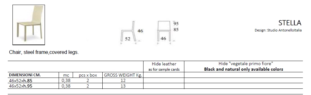 Krzesło STELLA - 2 modele - wiele wariantów wykończenia - oryginał ANTONELLOITALIA