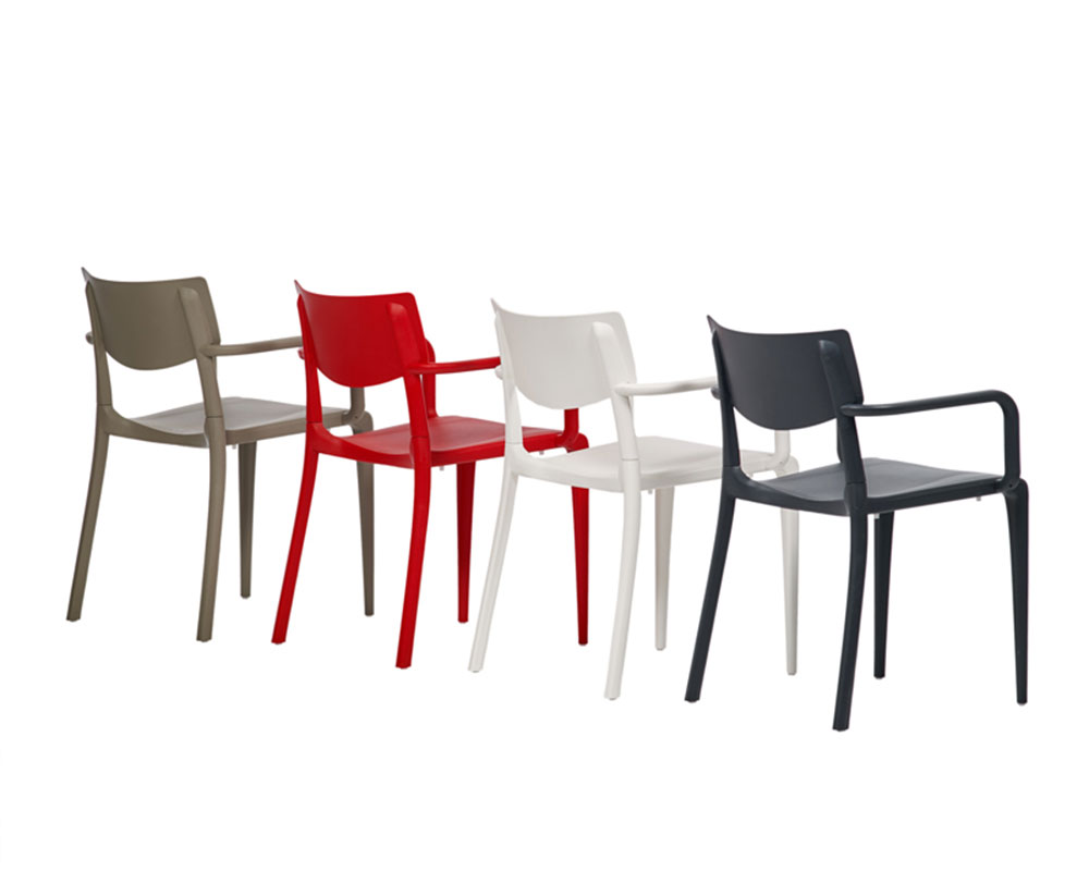 Krzesło TOWN z podłokietnikami, wykonane polipropylenu wzmocnionego włóknem szklanym - ORYGINALNY PRODUKT HISZPAŃSKI. Dokładne wymiary na zdjęciu w galerii. Krzesło przeznaczone do użytku zarówno do wnętrz jak i na zewnątrz pomieszczeń. Doskonałe krzesło dla branży HoReCa. Możliwość sztaplowania krzeseł.