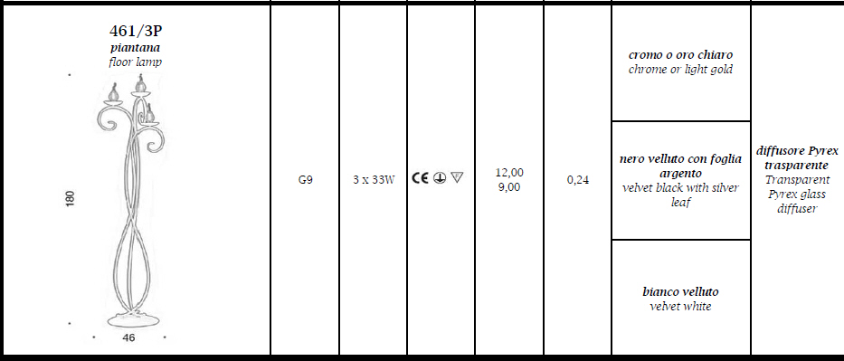 Lampa podłogowa 461/3P DECO - elegancka lampa doskonała zarówno do nowoczesnych jak i klasycznych wnętrz; konstrukcja metalowa dostępna w trzech kolorach, klosze ze szkła; specyfikacja produktu poniżej; oryginalny produkt włoski.