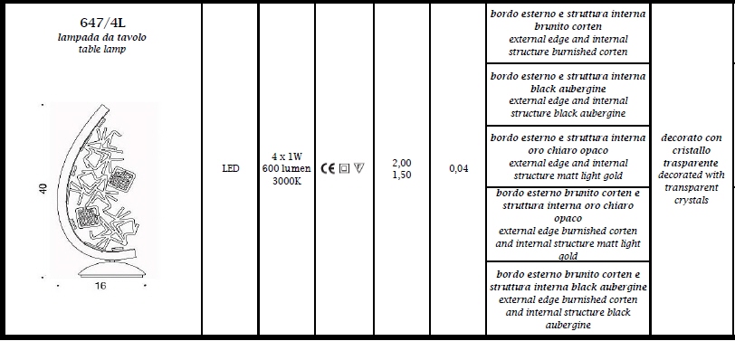 Lampa stołowa AMALGAMA 647/4L - lampa stołowa, dekoracyjna lampa; efektowna i niepowtarzalna dostępna w kilku wariantach kolorystycznych; specyfikacja produktu poniżej; oryginalny produkt włoski.