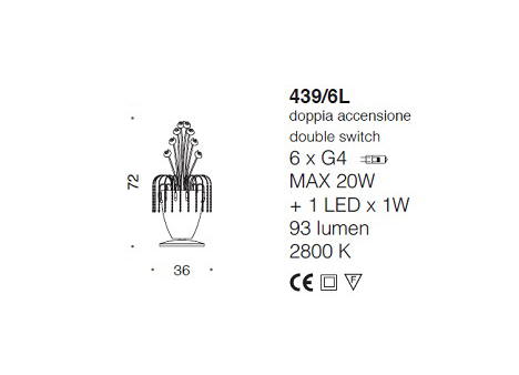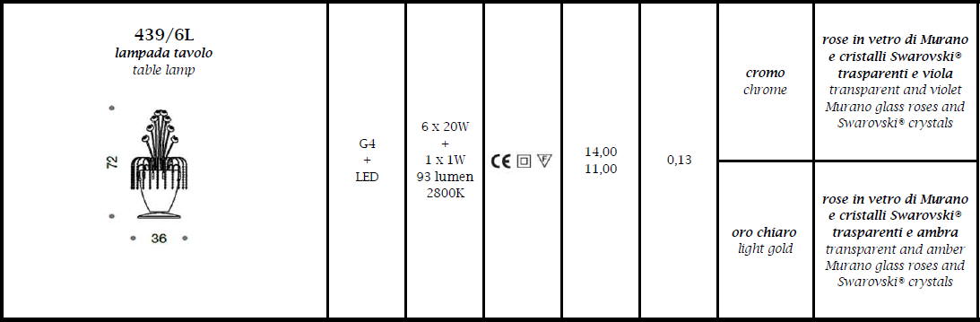 Lampa stołowa DIVINA 439/6L - dekoracyjna seria lamp połączenie metalu z kryształowymi i szklanymi dekoracjami; specyfikacja produktu poniżej; oryginalny produkt włoski.