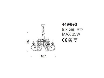 Lampa wisząca, żyrandol BAROQUE 449/6+3 - Oryginał IDL Italia Style