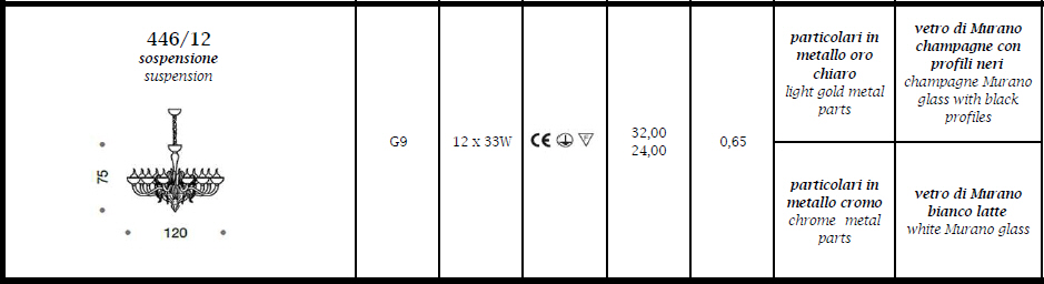 Lampa wisząca, żyrandol 446/12 z kolekcji Dolce Vita z serii EPOQUE dostępna w dwóch wariantach kolorystycznych.