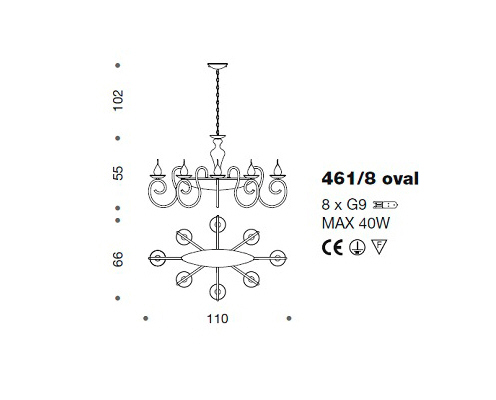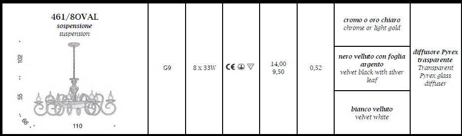 Lampa wisząca 461/8 oval DECO - elegancka lampa doskonała zarówno do nowoczesnych jak i klasycznych wnętrz; konstrukcja metalowa dostępna w trzech kolorach, klosze ze szkła; specyfikacja produktu poniżej; oryginalny produkt włoski.