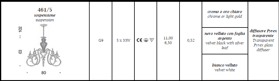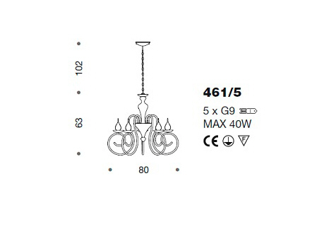Lampa wisząca 461/5 DECO - elegancka lampa doskonała zarówno do nowoczesnych jak i klasycznych wnętrz; konstrukcja metalowa dostępna w trzech kolorach, klosze ze szkła; specyfikacja produktu poniżej; oryginalny produkt włoski.