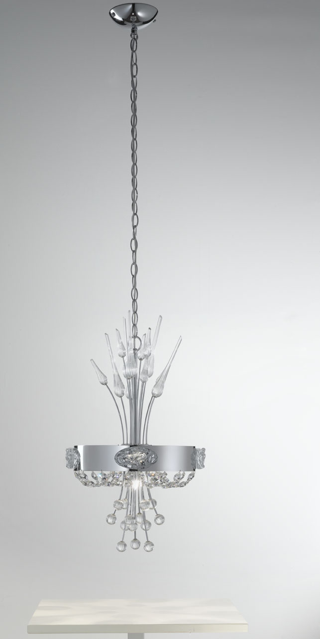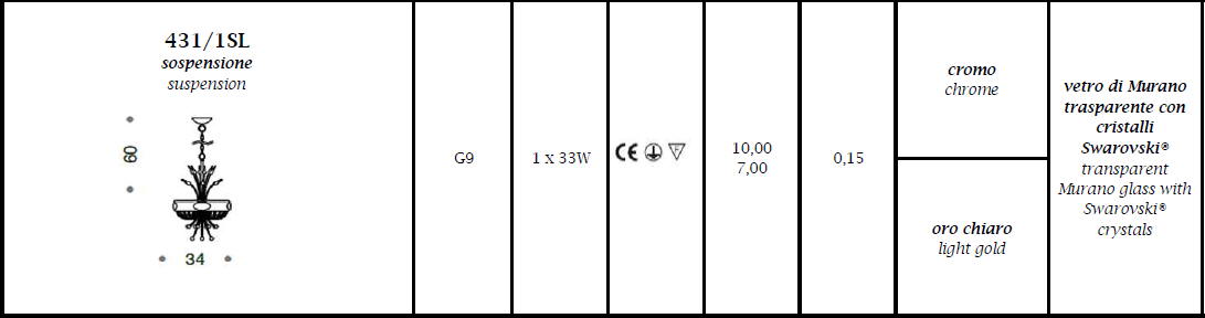 Lampa wisząca ELEGANCE 431/1SL - dekoracyjna seria lamp, doskonała do wnętrz w stylu galmour; metalowa rama w dwóch kolorach i dekoracje ze szkła i kryształków Swarovskiego; specyfikacja produktu poniżej; oryginalny produkt włoski.