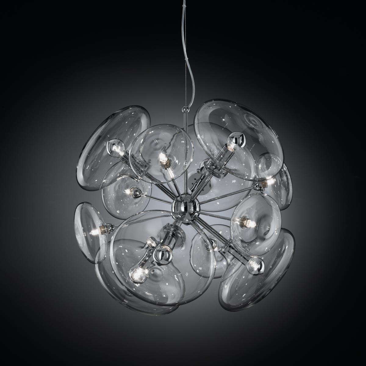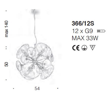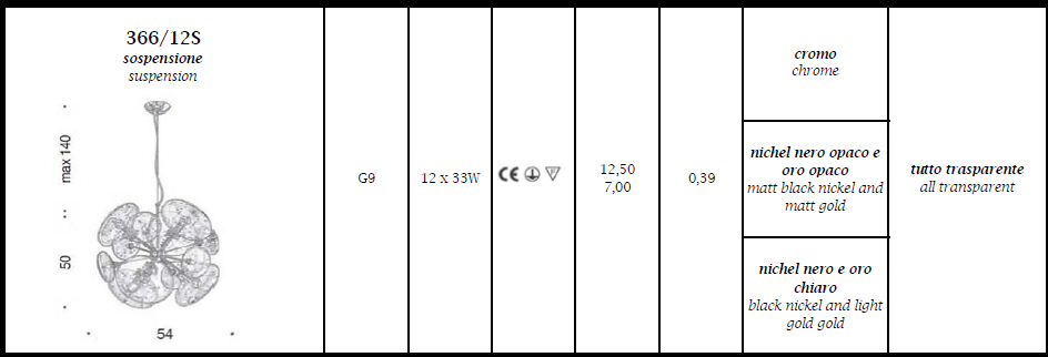 Lampa wisząca MOIRA 366/12S - minimalistyczna lampa; połączenie metalu ze szklanymi kloszami; efektowna i niepowtarzalna dostępna w kilku wariantach kolorystycznych; specyfikacja produktu poniżej; oryginalny produkt włoski.