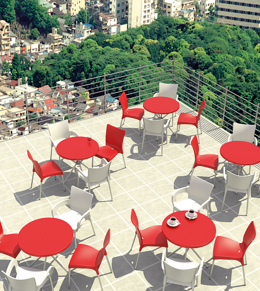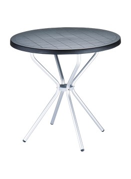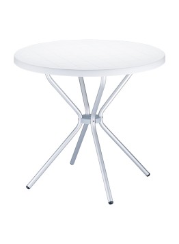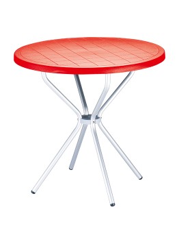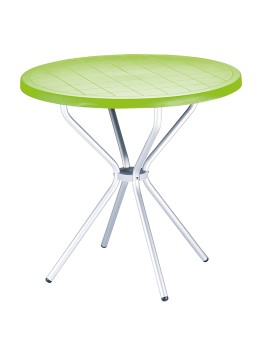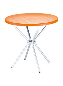 Stół, stolik okrągły POPPY fi 80; blat wykonany z polipropylenu dostępny w wielu wyrazistych kolorach, nogi z anodyzowanego aluminium. Doskonały stolik do ogrodu czy na taras ale szczególnie polecany do użytku komercyjnego doskonały stolik do restauracyjnego ogródka czy na hotelowy taras. Dokładne wymiary na zdjęciu w galerii.