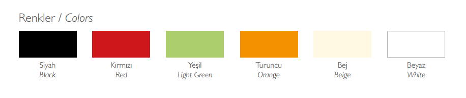 Kolory: black, red, light green, orange, beige, white.