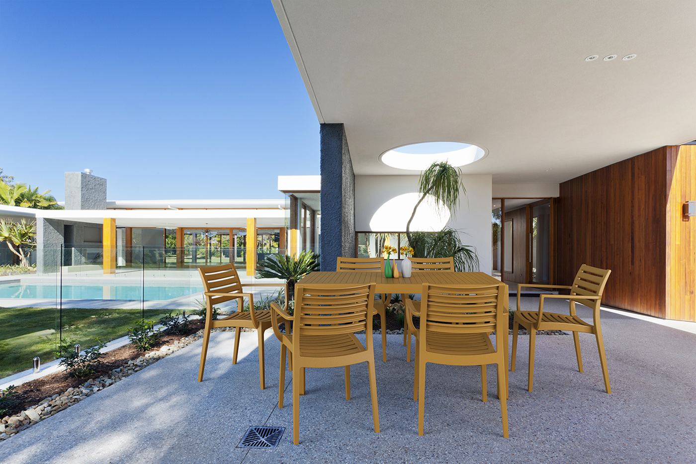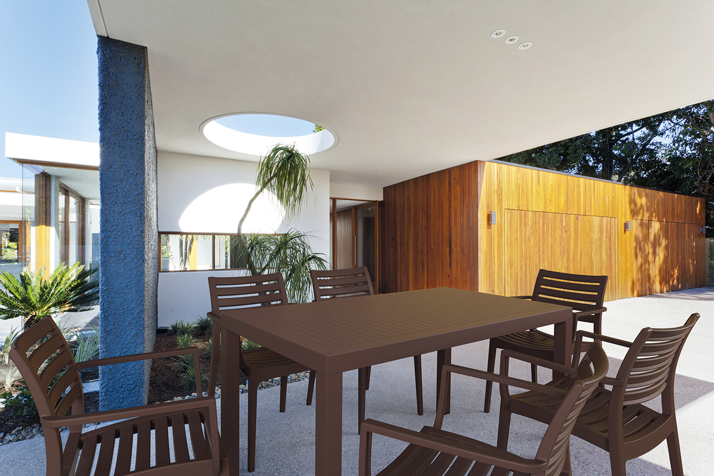 Stół ARES; wykonany z trwałego, odpornego na warunki atmosferyczne tworzywa, odporny na promieniowanie UV. Kolory odporne na warunki atmosferyczne. Stolik doskonały do ogrodu czy na taras, ale szczególnie dedykowany do użytku komercyjnego.