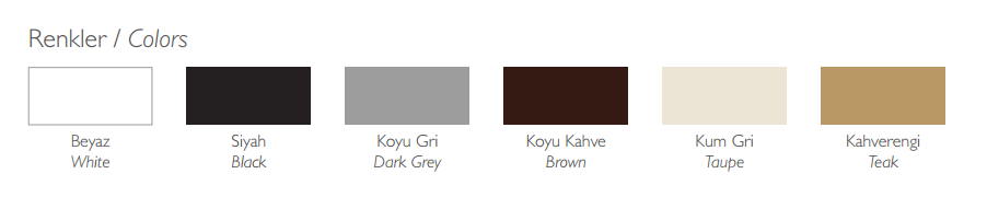 kolory: black, brown, dark grey, teak, dove grey, white.