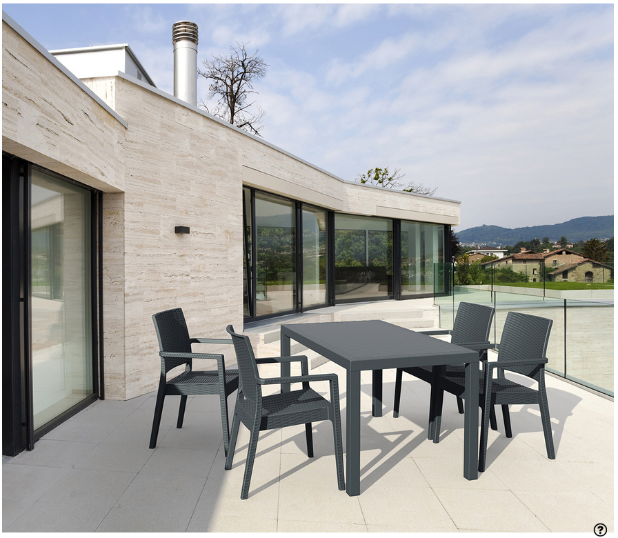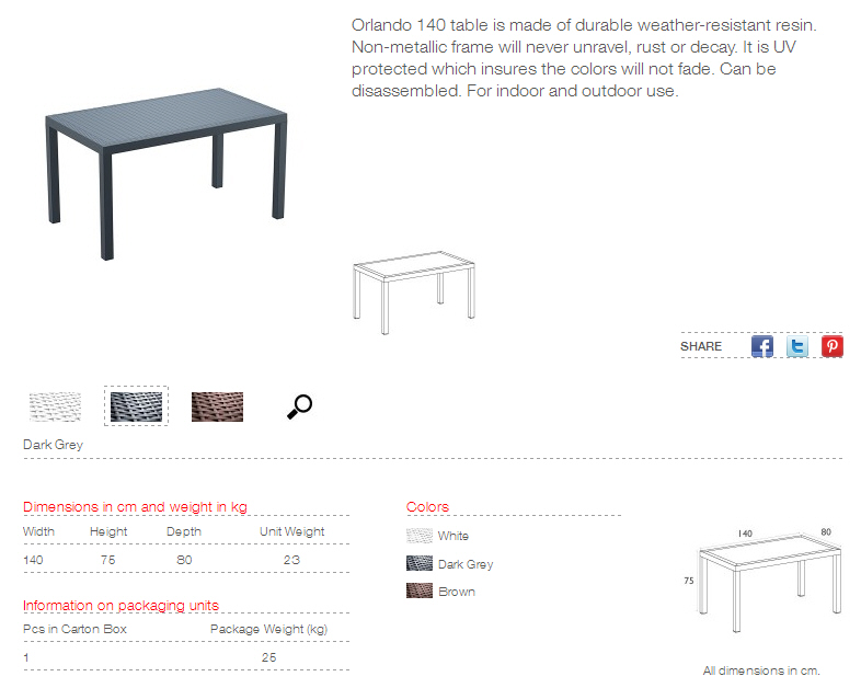 Stół Orlando z wysokiej klasy tworzywa imitującego technorattan. Świetnie nadaje się do użytku prywatnego w domu i ogrodzie jak i do kawiarni, restauracji.